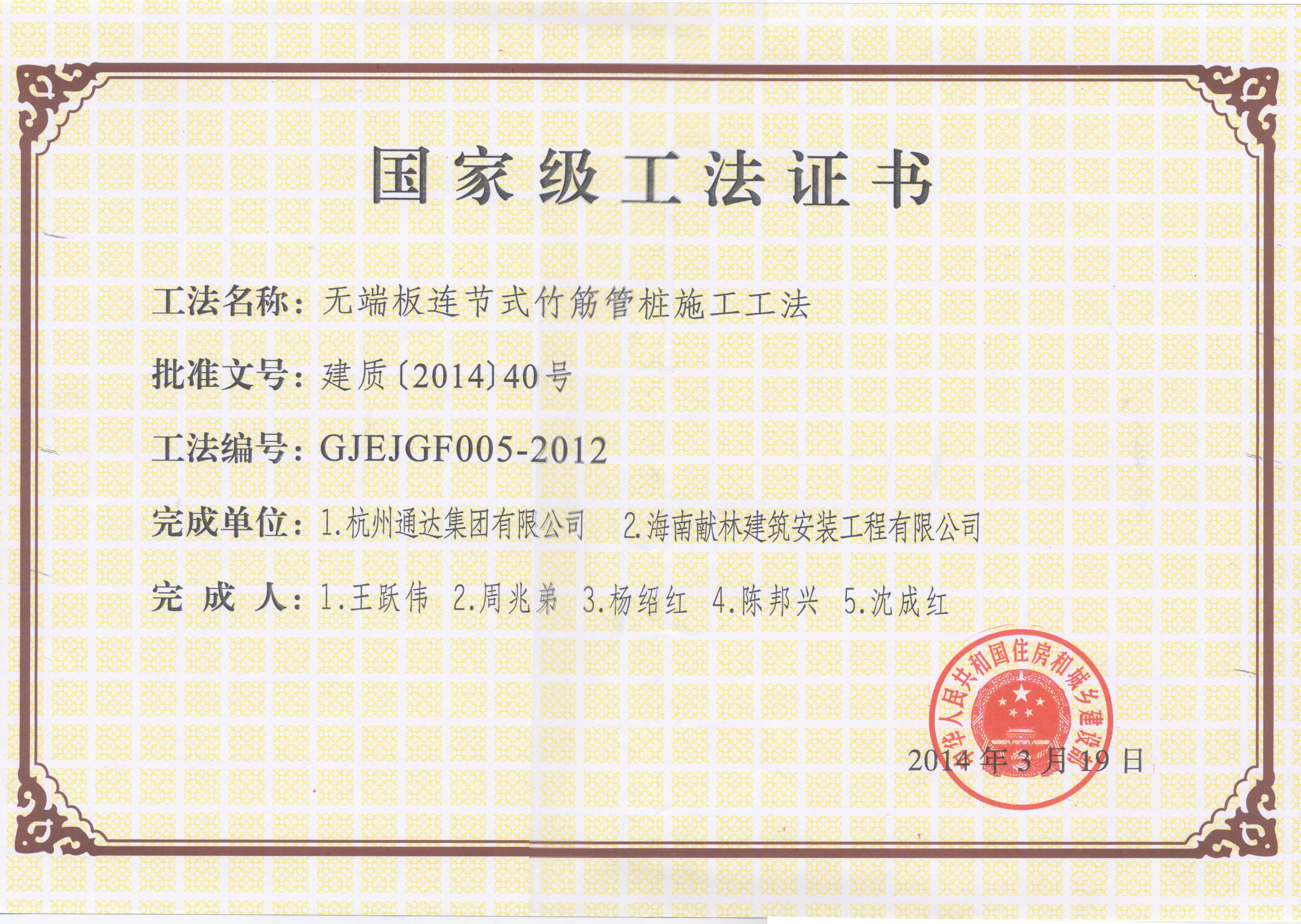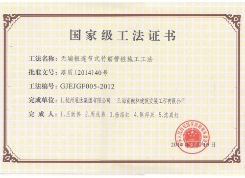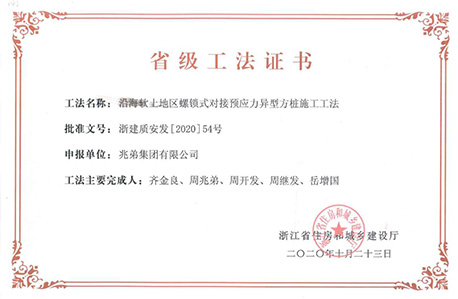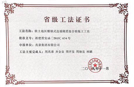 <p style="text-indent: 2em;"><span style=";font-family:微軟雅黑;font-size:14px"><span style="font-family:微軟雅黑"></span></span>公司擁有“無(wú)端板連節(jié)式竹筋管樁施工工法”“沿海軟土地區(qū)螺鎖式對(duì)接預(yù)應(yīng)力異型方樁施工工法”、“裝配式螺鎖連接異型管樁智慧植樁施工工法”、“預(yù)應(yīng)力混凝土離心樁無(wú)剪切快速?gòu)?qiáng)拉對(duì)接施工工法”、“無(wú)端板連接式竹筋管樁施工工法”、“機(jī)械連接預(yù)應(yīng)力混凝土竹節(jié)樁施工工法”、“深厚軟土地區(qū)螺鎖式連接預(yù)應(yīng)力混凝土異型管樁拼接施工工法”、“軟土地區(qū)螺鎖式連接剛?cè)峤M合樁施工工法”等8項(xiàng)國(guó)家級(jí)、省級(jí)工法技術(shù)。</p><p style="text-indent: 2em;"><br/></p>
